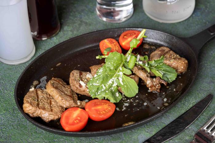 İnce dilimlenmiş süt dana bonfilelerini Trabzon tereyağı ile pişirip, taze roka yaprakları ve rendelenmiş parmesan ile ..