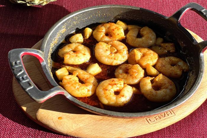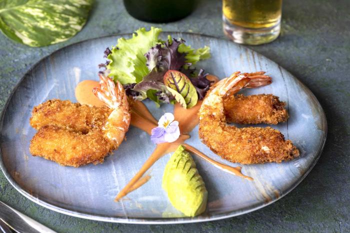 Panco ile kaplanmış çıtır karides, salsa bravo sos ve Akdeniz Yeşillikleri eşliğinde ( ALKOL İÇERİR)