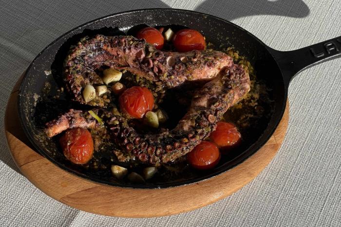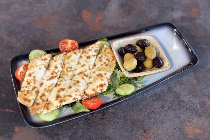 Trabzon tereyağı, Taşköprü sarımsağı, taze fesleğen yaprakları, mozerella ve baharatlar ile ..