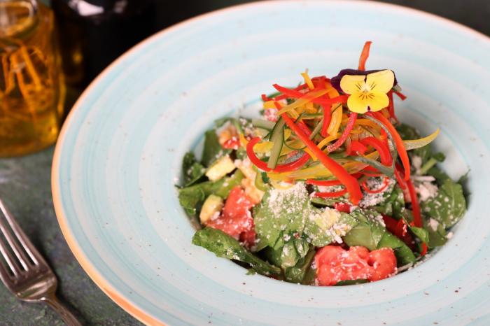 Roka, avokado, kapya biber, yeşil biber, ceviz, çeri domates, salatalık, rendelenmiş parmesan ile damağınıza dokunacak harika bir tat.